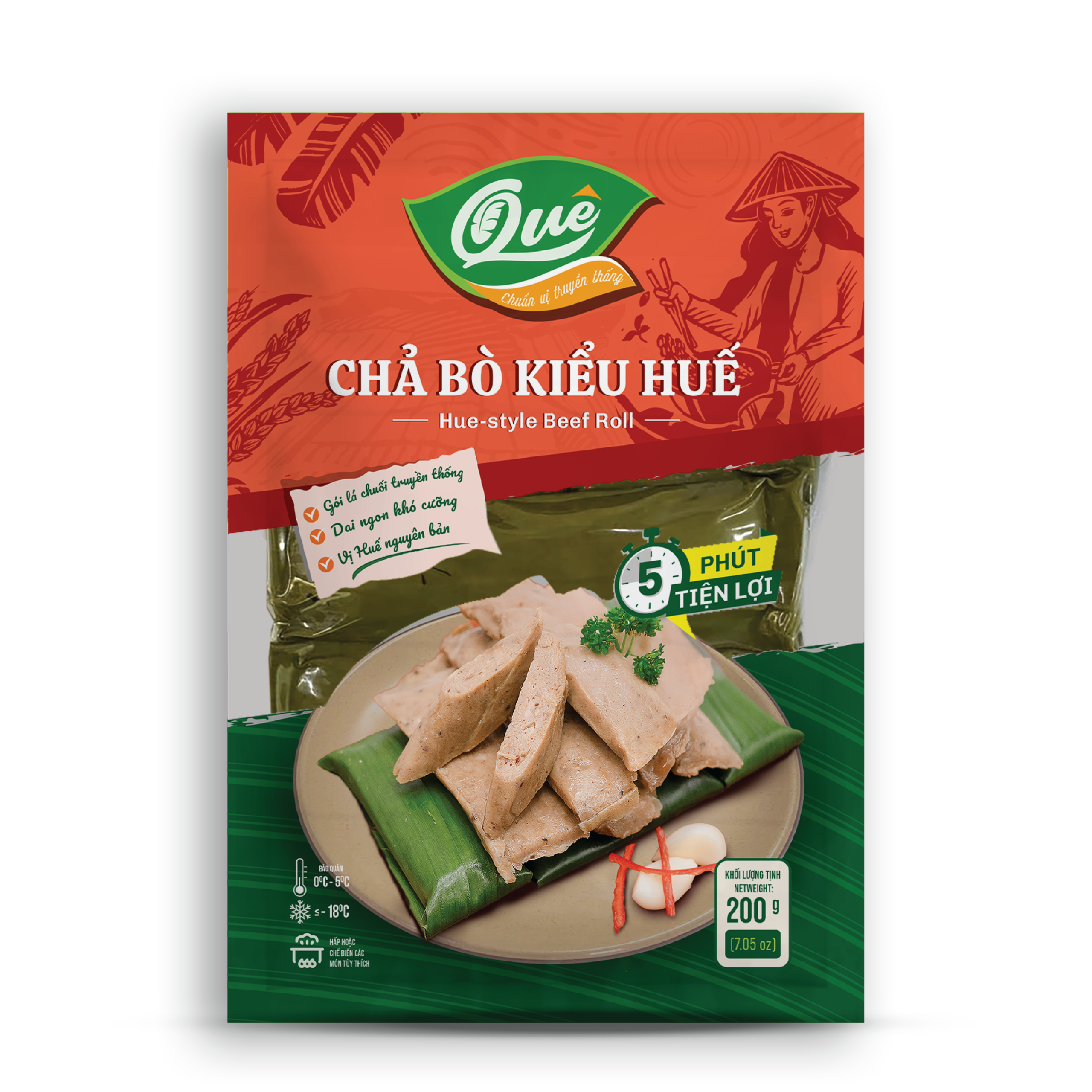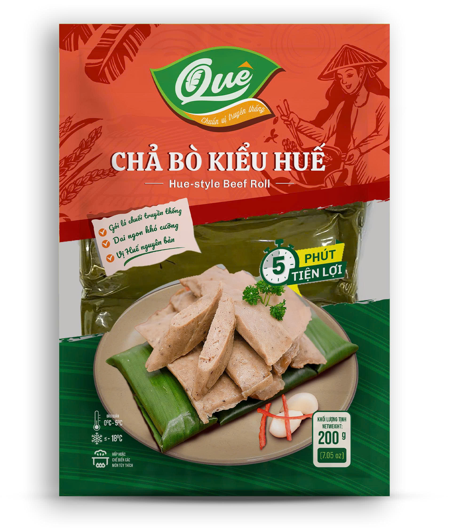 - Tiện lợi – Tiết kiệm thời gian: Chả bò đã được hấp chín hoàn toàn, đóng gói 200g tiện lợi. Bạn chỉ cần rã đông và thái lát là có thể thưởng thức ngay, tiết kiệm thời gian đáng kể cho những bữa ăn bận rộn.