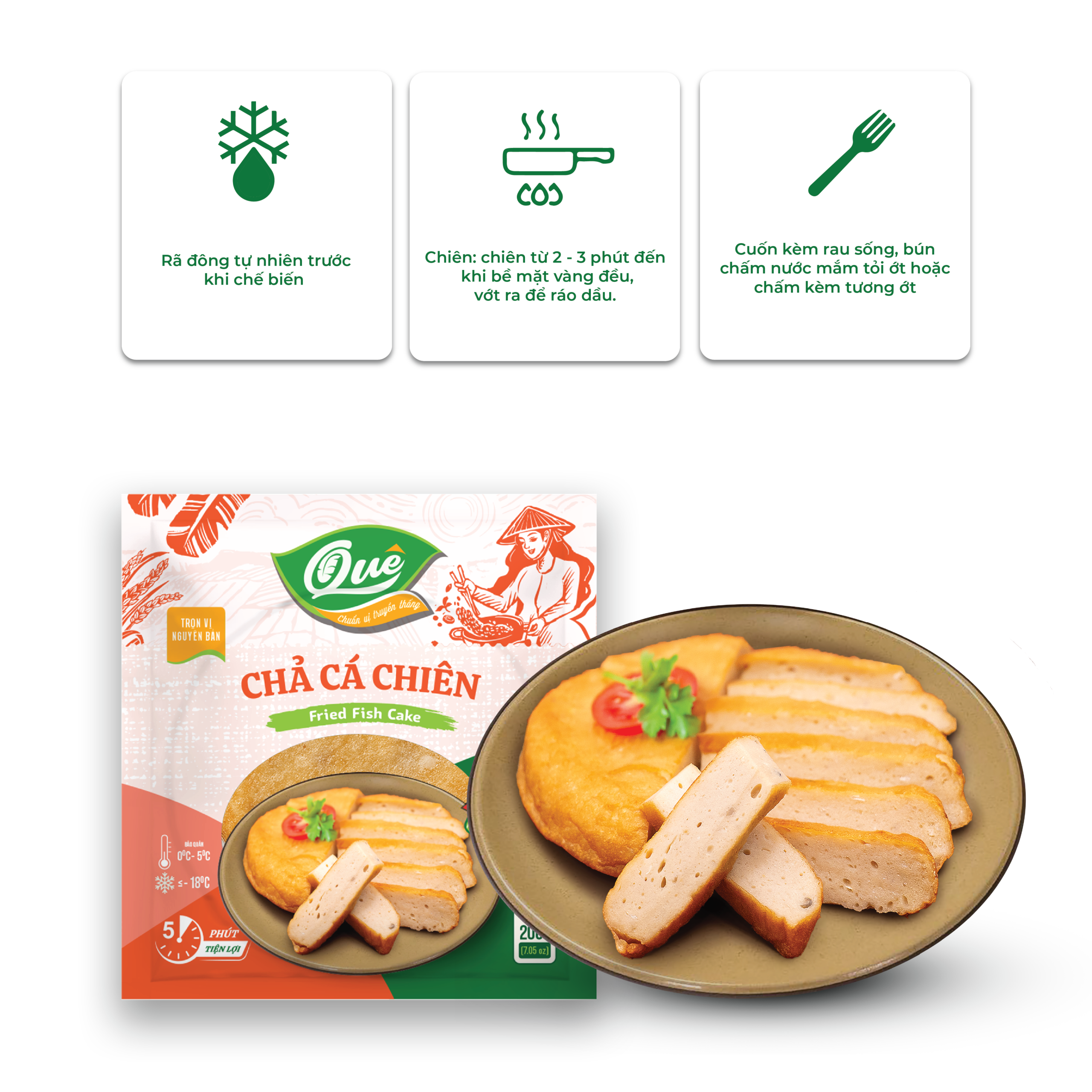 Chả cá chiên là món ăn quen thuộc, dễ kết hợp trong nhiều món như bún, bánh mì, cơm phần hay ăn kèm rau sống. Với chả cá chiên Hoa Doanh, người dùng không cần sơ chế cầu kỳ, chỉ mất khoảng 5 phút là đã có ngay món ăn nóng hổi, thơm ngon.