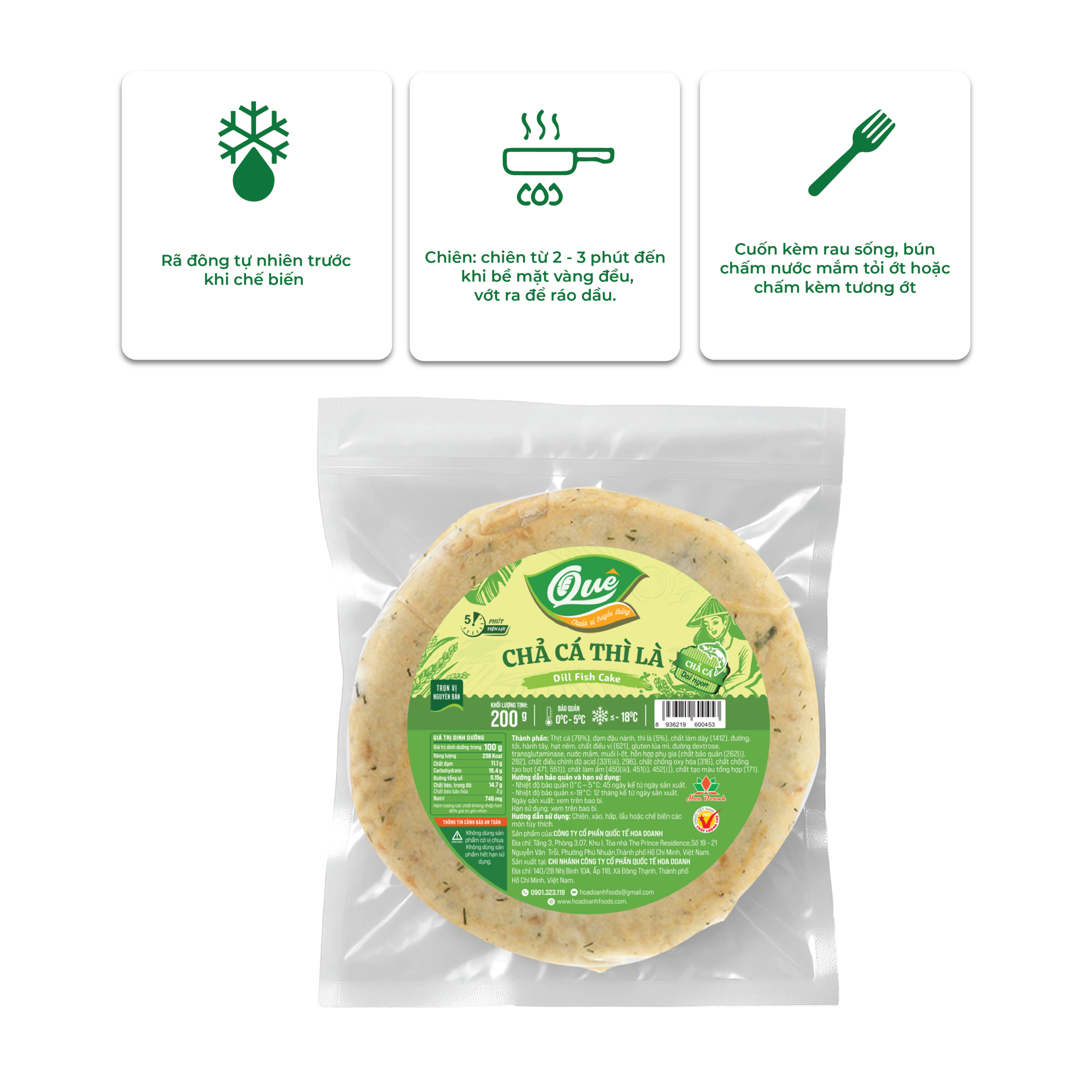 Chả cá thì là Hoa Doanh 200g là món ăn tiện lợi, mang đậm hương vị truyền thống và dễ dàng kết hợp vào nhiều món ăn gia đình.